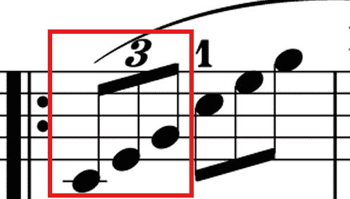 表示一个**三连音**(六连音用法与此相似,仅需将3改成6,**其它类型的连音**也请使用3或6(即使是5连音))