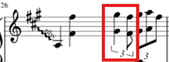 表示一个**三连音**(六连音用法与此相似,仅需将3改成6,**其它类型的连音**也请使用3或6(即使是5连音))